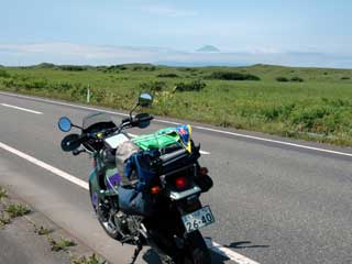 日本海側を南下(14年ぶり?)です。 遠くに利尻富士が見えています。 |
