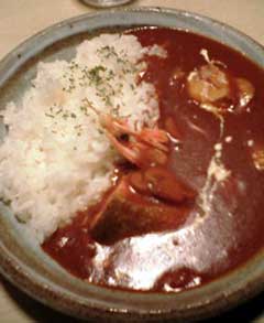 ターミナルのレストランにて夕食。 なぜかあまり食欲なく軽く(?)シーフードカレー。 |