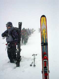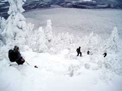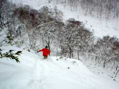 この日は同宿のSさんと一緒に近くのローカルスキー場で粉まみれ。 といっても地元の人はいいところ知ってるみたいでほとんどいい新雪は食い尽くされていました。 どんどん奥へトラバースしていきます。 |