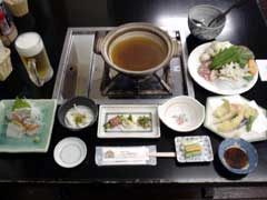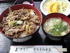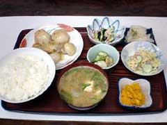 近くの食堂でお食事。 ここに入った理由は看板に温泉マークがついていたからでした。 ここらへんの家はほとんど温泉を引いてるという話です。 ここの食堂も温泉あるそうなのですが配当量が少なく温いので一般には開放していないそうです。 夏は入れそう・・・ |