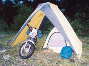 テントとバイクが収まる大きさ。