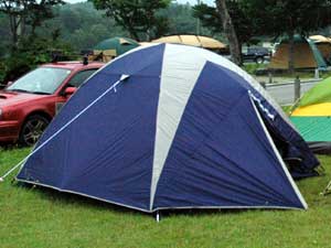 キャプテンスタッグ レニアスドームテント 5〜6人用 2004年〜 270cmX270cmで広々。 税込み4990円のお買い物。 宴会用かなあ・・・ |