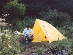 ダンロップツーリング用テント 1人用 1987年〜 初めてのテント。 初使用まで買ってから3年を要した。 丈夫だがとにかく狭い・・・ |