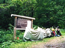 登山道入り口までバイクで行き、そこから歩きになります。 |