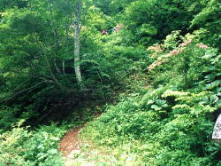 こんな感じの山道を1時間ちょっと歩きます。 アップダウンは意外にあり距離の割には少しこたえます。 |