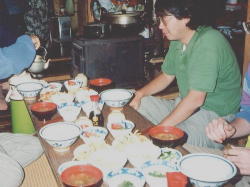 夕食は見かけは質素ですが 味はすばらしい。 本場のコシヒカリを使ったご飯です。 |