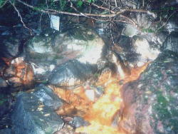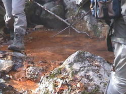 | 塩原の甘湯沢上流に湯が湧き出ているという情報を元に1997年5月に有志数名でアッタックするもあえなく敗退。 2ヶ月後に再びアタックしました。 県道を小太郎ヶ淵方面へ曲がらず直進し最後(?)の民家横に甘湯林道のゲートがありました。そこから歩いて行きました。 40分ほど歩いて沢へ下りるとその湯は見つかりました。 また最近他のいくつかのHPにここの湯の紹介がされているのを見ましたが我々が行った所と違うような気がして2年ぶりに出かけてみました。 |