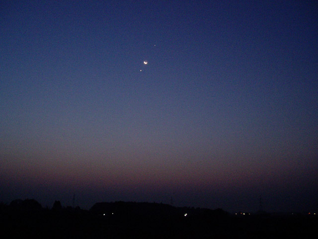 | 1年ぶりのスターウォッチングです。 初めてのデジタルカメラでの星の写真でした。 仕事場近くの筑波山を前景に入れるいい場所もありましたがこの日家の近くで人をピックアップして会社へ行かなければいけなかったのとここ数日のモヤで山は見えないと判断、鬼怒川の堤防での撮影となりました。 最初D−70にマニュアルフォーカス200mmF4をセット。 撮ろうとしましたがシャッターが切れず(オートフォーカスモードを解除してなかったんですね。)アタフタ。 ASAいくつにセットしてたのかも思い出せず適当にレンズを換えながらシャッターを押し続けました。 三脚は大きなのを使用しましたが如何せんレリーズなし。 ブレを気にしながらの撮影でした。(少なからず全部ブレてます。) また地球照も写したかったのですがすべて露出アンダー・・・ 何も考えんと撮ったバカチョンデジカメでもちゃんと撮れていました。 しばらくやってないことやるには ちゃんと下調べ・準備してやらないとね。 獅子座流星群の教訓が生かされていない・・・ |