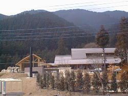 粟野町の中心部からどんどん山へ入って行きます。 この先道が無くなるのではないかというくらい奥へ行くとこんな施設が出来かけています。 温泉施設でこの4月に営業開始だそうです。 |
