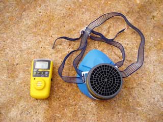 今回は一応硫化水素用用のガスメーターとマスク持参。 まさか本当に必要になろうとは・・・ |