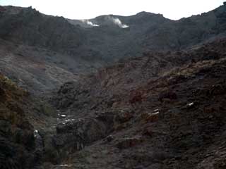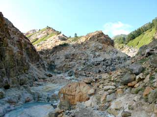 | 上部に噴気地帯。 下部には湯が沸いています。 ここは見ただけ・・・ |