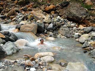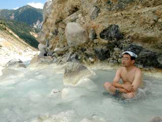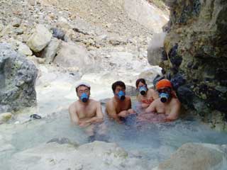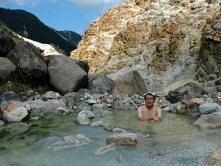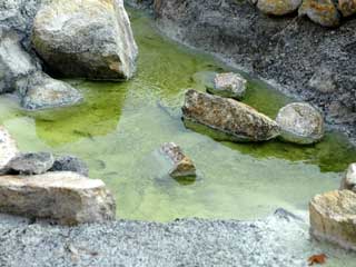 | 通称崖の湯。 浅いところでは気になりませんでしたが深いところでは噎せます。はっきり言って危険です。 ガスマスクが必要な初めての温泉でした。 |