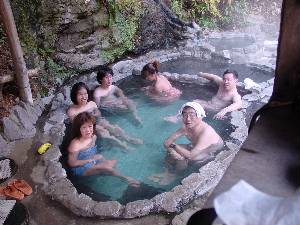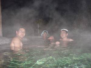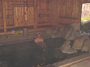 白滝の湯です。地獄から宿で降りる途中にありました。源泉から湯が小さな滝となって湯船に流れ込みます。 |