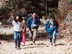 銅粉の湯氏と私はオフロードブーツで歩いています。
