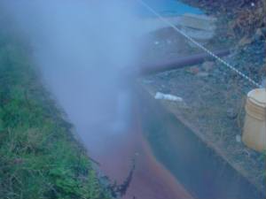 | 数年前にこの横を通っていたら櫓が立っているのを確認。その後訪問していませんでしたが・・・ 温泉仲間から源泉が垂れ流しになってるという話を聞きやってくるとなんと!!! |