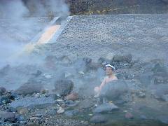 川原まで流れ出た湯は当然どこかへ溜まるはず・・・ |