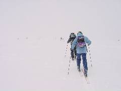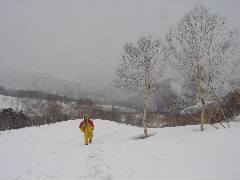 露天風呂に向かいます。 雪の中10分くらい裏山に登ります。 スキーウェアを着てスキーブーツ履いて登りましたがスキーも担いで来た方が正解でした。 帰りに意外に楽しめたみたいです。 (他のグループの人はスキー担いで来てました。) |