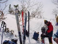 シールをはずし、滑走の準備です。 このあたり本当に新雪です。 このくそ重い板持ってきて正解??? |