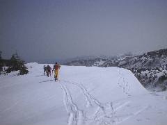麓の木地屋の集落まで滑って下ります。 重い雪でしたがそれなりに楽しめました。 また来たいな・・・(で、晴れた中で露天風呂!!) |
