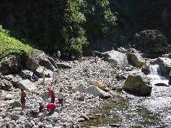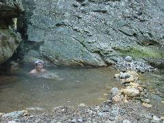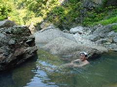 混浴露天のすぐ奥には湯溜まりがありました。 崩れていた堤防を修復し湯加減丁度で快適入浴です。 |