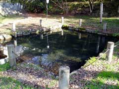 少し上流に町指定文化財の湯元があります。 手をつけてみるとかなり冷たいです・・・ |