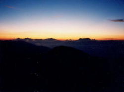 翌朝日の出前に入浴。 ご来光を待ちます。 すごく厳粛な雰囲気です。 日の出とともに誰からともなく拍手が起こりました。 |