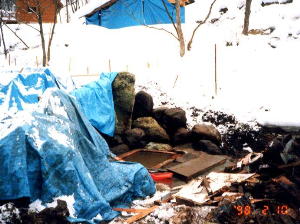 | それから半年経って行ってみると なんと湯船のみは残されているではありませんか。 小屋はなくなっても相変わらず底から湯がプクプクと湧き続けています。 うれしいやら悲しいやら。 |