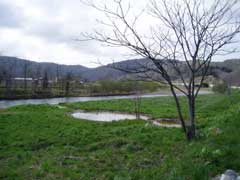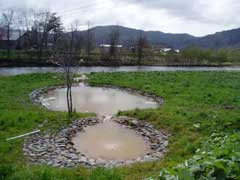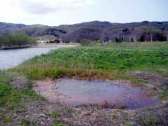 湯ノ岱温泉へ渡る橋の北側に何やら池みたいなものがあります。