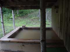 内湯も木造。 湯はやや緑がかった濁り湯。 近くの昆布温泉っぽい湯です。 源泉温度は低めなので沸かし湯みたいですがいい湯です。 |