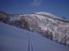 後ろの方はチセヌプリです。 天気もよくたくさんの人が登っていました。 この日はお気楽装備で飲み物・非常食を持ってきてなかったので残念ながらゲレンデ脇の新雪のみで我慢でした。 |