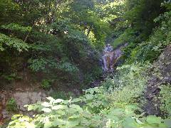 で、こちらは温い湯の滝ですがなんとこの対岸真正面に小中学生の団体がこちら向いて休憩、食事をしているではありませんか。 ここで素っ裸には・・・なれない・・・ |