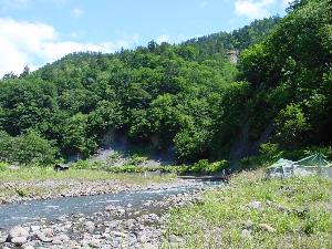 今回ここを訪れた理由は上流にある紅葉沢の湯だったのですがなぜか見つからない・・・ ここのはずなのだが・・・ 増水で埋まってたのかしら??? |