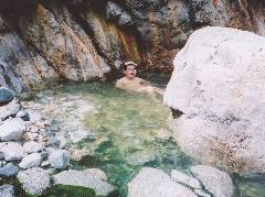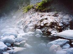 結局川へ合流するあたりでやっと入浴が可能になりました。 でもなんか生臭い感じのする湯でした。
