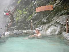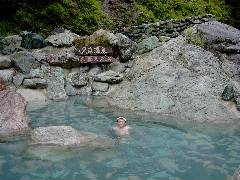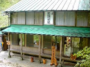 天女の湯の名前どおり本来は女湯です。 他に女性客(どころか男性も)がいなかったため宿の人がせっかくだから入ったらと薦めてくれました。 ここからは黒薙川の流れが真下に望めます。 |