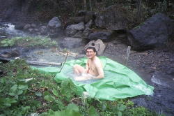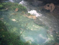 やや白濁したいい湯です。 後ろは崖です。 気を抜くと・・・ちと恐いです。 |