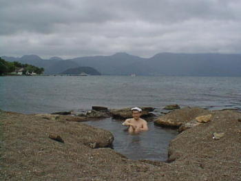 適温だが砂で底が浅く埋まっている。 お尻で掘り下げ程よい深さに・・・