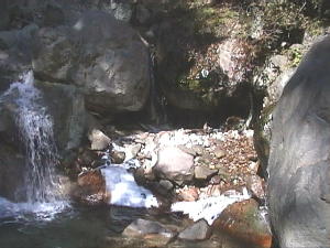 少し上流にも湯の湧出が見られますが入湯できるような所はありませんでした。 |