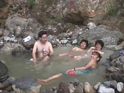 4年前に湯船を造った場所からさらに上の滝のすぐ下にある源泉を使用した湯船です。 先人が造った跡がありましたがせいぜい一人用でした。 思い切って大工事を行い、(2時間くらい?) 大きな湯船ができました。