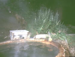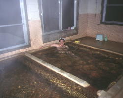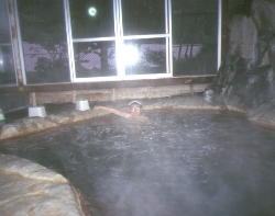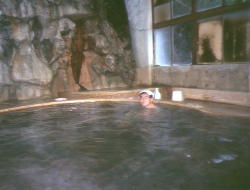 大浴場です。 浸かっていろのは鉄(サビ)の湯。 後ろに炭酸の湯 写ってませんが左手に滝の湯があります。 成分は全部違います。 |