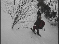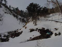 | 2年前に来たときはスキーで颯爽と滑ったのですがこの日はモナカ雪状態。 長い板では全くターンができません。(私自身の技術の問題もあるが・・・) ちなみにこの日スキーでのアタックは私含め2人でした。 |