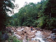 そしてガラン谷の遡行が始まります。 雨が降れば増水し危険でしょうが天気がよければ穏やかな谷です。 |