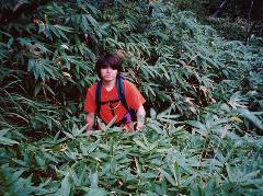 少し沢を登ると左手に踏み後があり、良く見るとロープまであります。 そこを薮をかき分けるように登るとちょっとした広場になります。 |