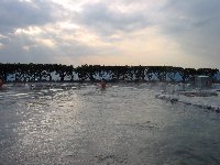 伊豆半島に沈む夕日を望める露天風呂。水着着用。 入浴料 400円 |