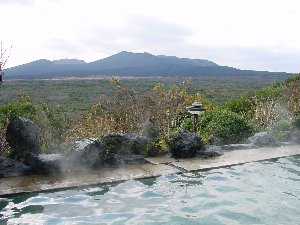 | とにかく眺めの素晴らしい露天風呂。 三原山その裾野に広がる原野を見下ろせる。 なんと朝5時半からの営業。 入浴料 800円 |