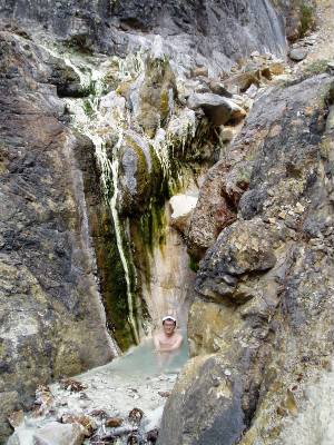 念願の噴泉塔直下の湯入湯