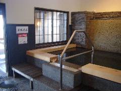 手前に加熱浴槽。 奥に源泉風呂と書かれた浴槽があります。 |