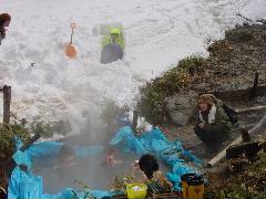 一度下まで降りてカメラを忘れたのに気づき車まで取りに行って戻ったらすでに入浴が始まってました。 最近誰か来て入ったのか今回は掃除不要でした。