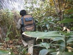 前回のアタックから3年経ってました。 前回と同様銅粉の湯氏と再アタックです。 今回は二人とも4輪だったので最初から歩きになります。 最初は完全な薮こぎです。 |