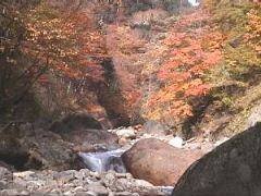 紅葉がすばらしくきれいで 疲れも感じません。 心が和みます。 猿岩から30分歩いても湯らしき物は見当たりません。 |