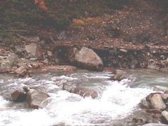 猿岩のあたりから1kmくらい上流になにやら堆積物みたいな物が見つかりました。 ここまでのんびり歩き約3時間半です。 |